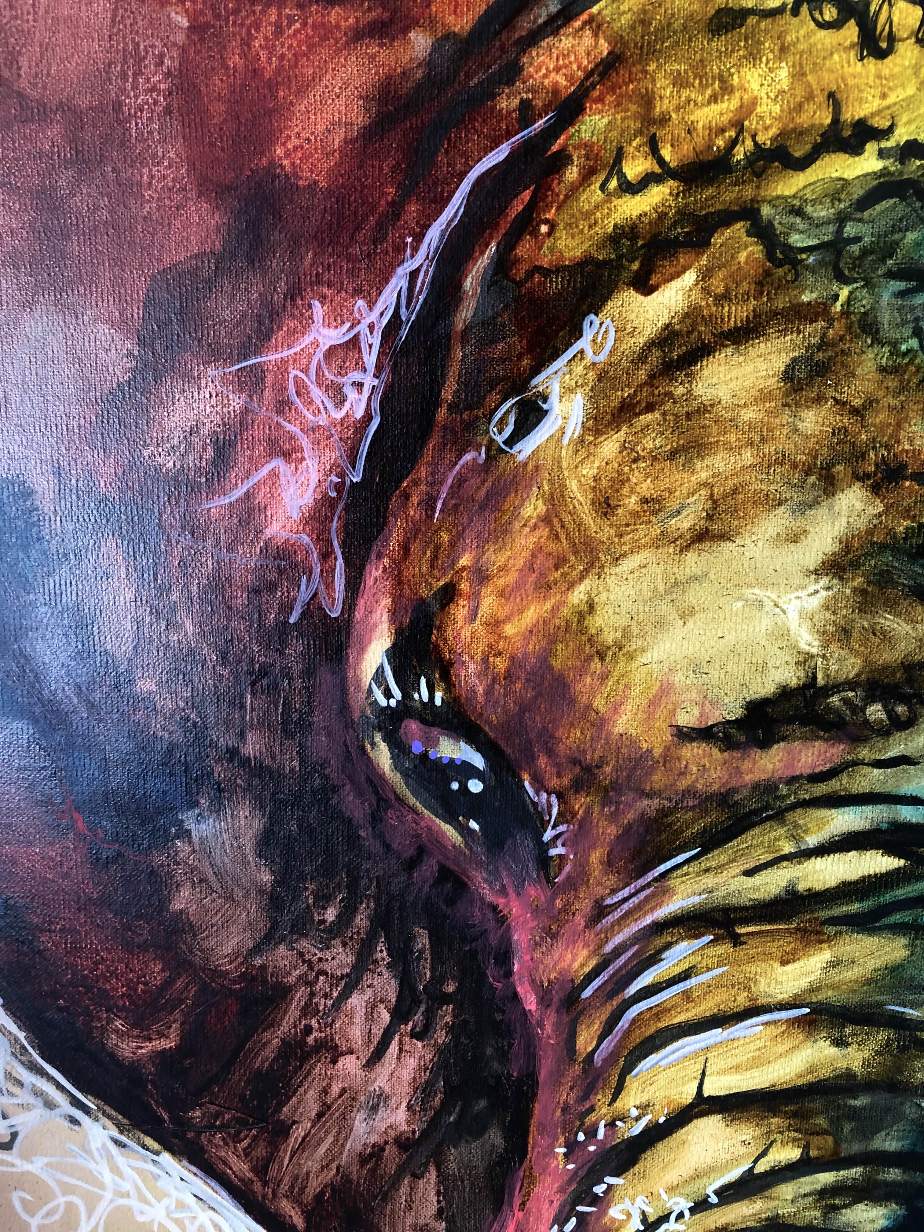 Disponible: 350 euros, 54X65cm. Que dire sinon "PUISSANCE". Encre acrylique, acrylique, encre de chine, feutres peinture sur toile de lin.