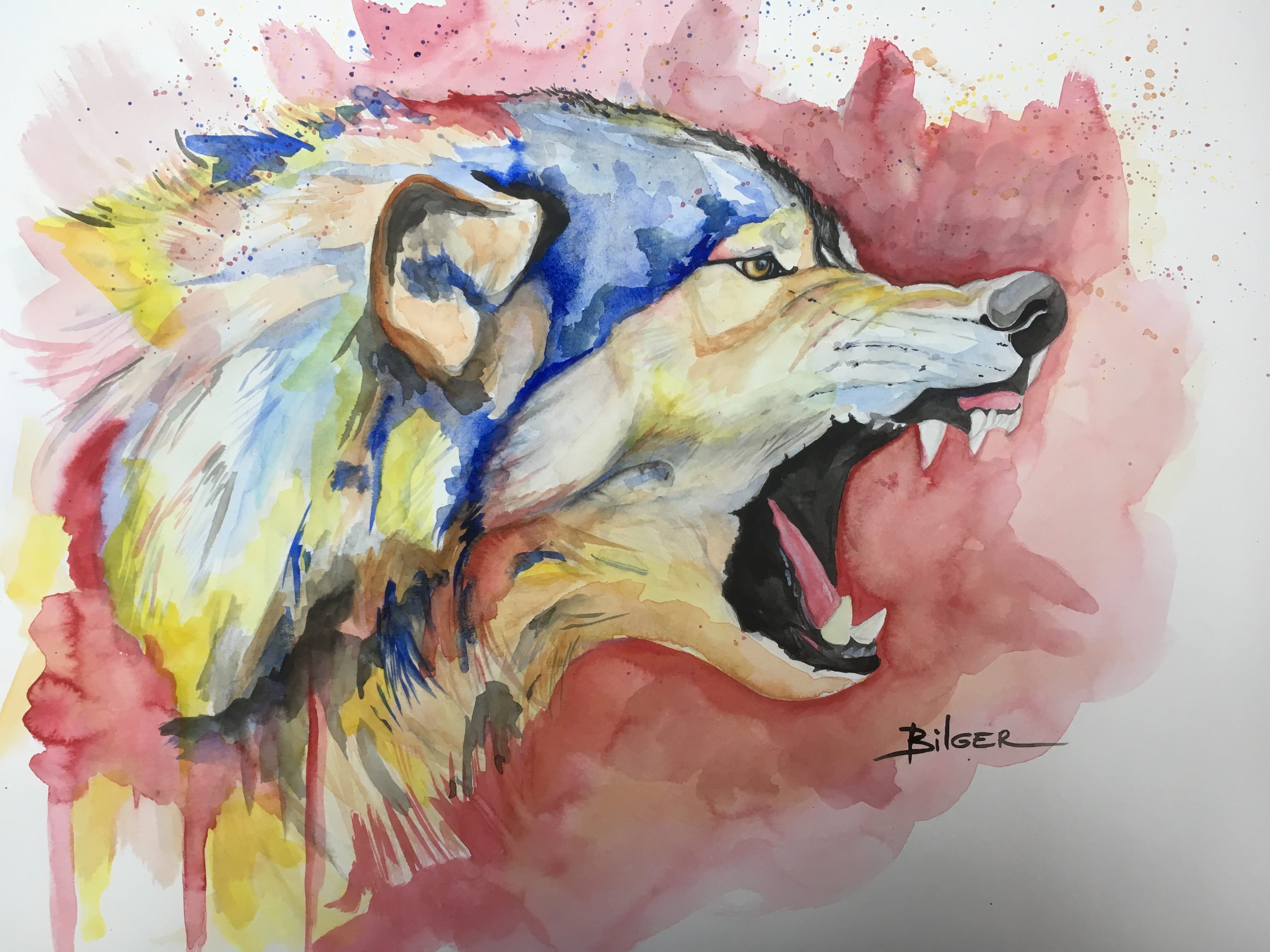 "Wolf", 2020. Disponible: 300euros, aquarelle sur papier aquarelle 300gr de haute qualité. Il est la représentation du clan.